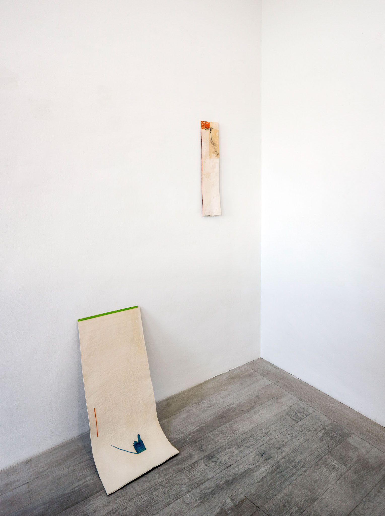 Katerina Matsagkos „CERAMIC PLATES" „CERAMIC PLATE Nr. 8“, 22 x 80 x 0,5 cm, / „CERAMIC PLATE Nr. 25“, 95 x 44 x 0,7 cm, ceramics, glaze, 2017 / 2019 | Akademie-Galerie, Raum 6 Katerina Matsagkos „CERAMIC PLATES"„CERAMIC PLATE Nr. 8“, 22 x 80 x 0,5 cm, / „CERAMIC PLATE Nr. 25“, 95 x 44 x 0,7 cm, ceramics, glaze, 2017 / 2019 | Akademie-Galerie, Raum 6
